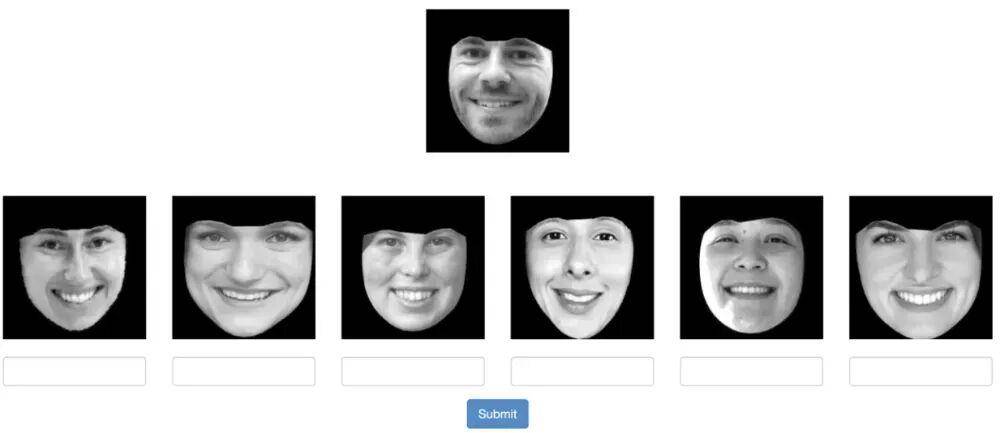 接着,研究者采用了两种评判方式,一种是让 153 名参与者在 6 张照片中按照与目标照片的相似度和婚姻可能性进行排序,另一种是采用一个叫做 VGFace2 的面部识别算法来进行同样的照片排序。