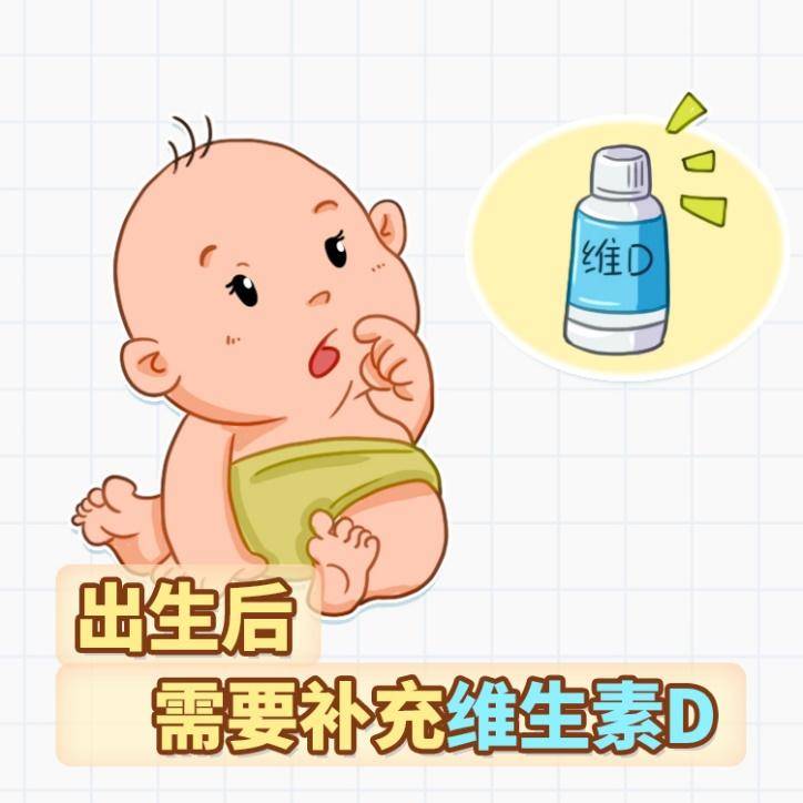 维生素D需要在出生后就开始补充,因为食物中维生素D含量很少,阳光照射也可能不足。母乳喂养儿每天可补充400-600国际单位,人工喂养儿可酌情减少。