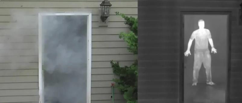 如图所示,这张图即展示了热成像仪的显示结果,又证明了我们开头的结论:我们无法通过热成像仪,透过建筑看到内部的人或者物体。不过它在真实世界中仍然有着不可替代的独特能力: