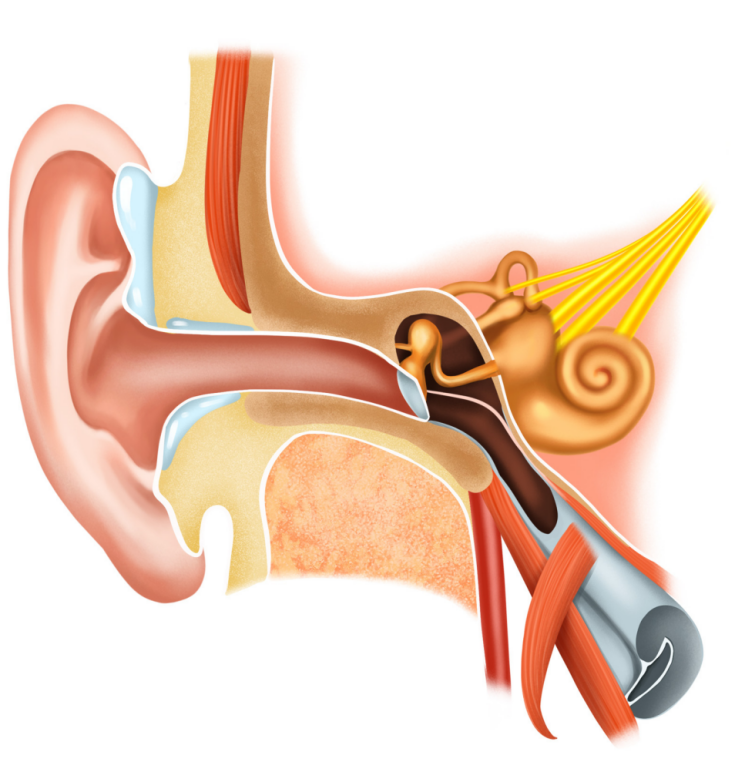 想象一下我们的耳朵结构:最外面是耳廓和外耳道,尽头是一层薄膜,称为鼓膜。鼓膜的内侧是一个充满空气的小空间,即中耳。中耳里有一套重要的“传动装置”——3块听小骨,它们负责将鼓膜的振动传递到内耳。为了保证这套装置高效工作,中耳内的气压必须与外界大气压保持一致。这一平衡是通过一根叫作咽鼓管的小管子来维持的。