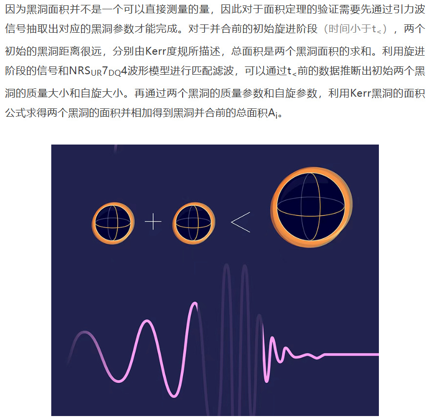 在并合后的铃宕阶段,利用准正则模频率和衰减率与黑洞质量和自旋的关系,可以从中抽取出末态黑洞的质量和自旋。在得到黑洞的确切信息之后,便可以利用Kerr黑洞的面积公
