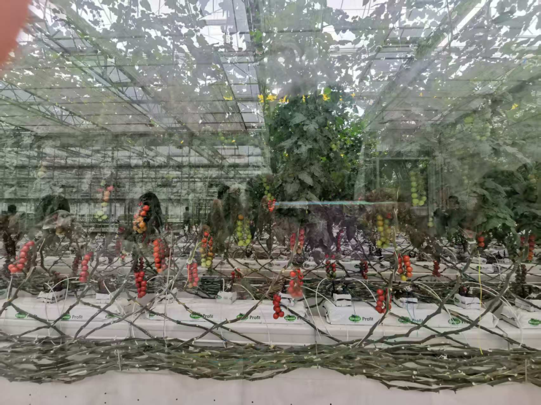 串收樱桃番茄,可以采收多次,采收过的藤蔓落下盘在底部 作者拍摄