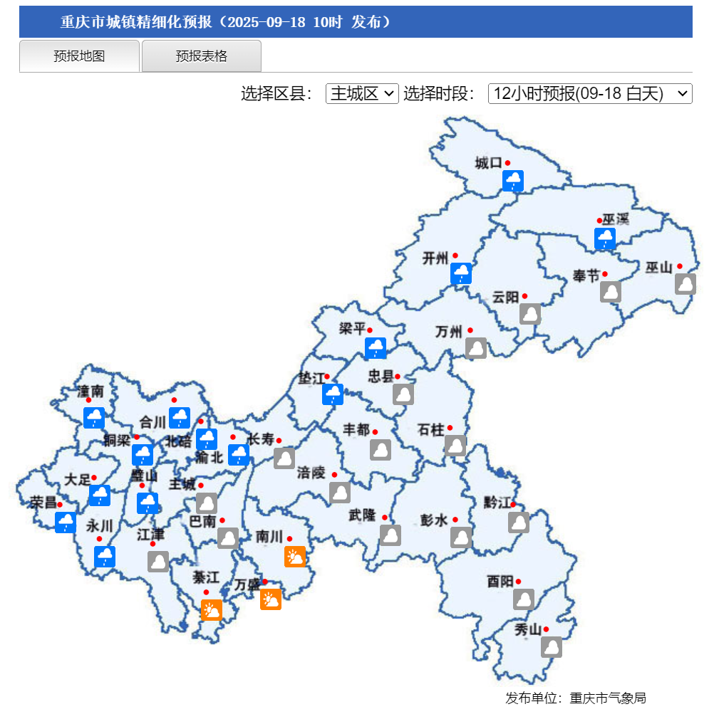 重庆市城镇精细化预报。来源:中国天气