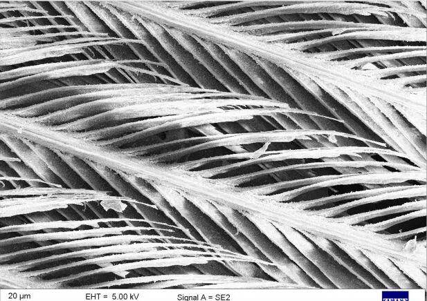 羽小枝与羽小钩相互交叠在一起的电镜照片,图片来源:Wikipedia