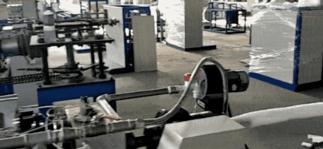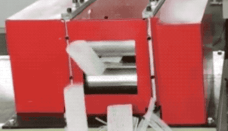 回到我们的泡沫网兜制作~在长长一条的网套被压平后,还需要滚刀裁切。