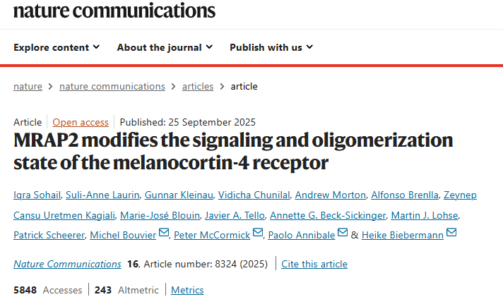 [1] Sohail, Iqra, et al. "MRAP2 modifies the signaling and oligomerization state of the melanocortin-4 receptor." Nature Communications 16.1 (2025): 8324.