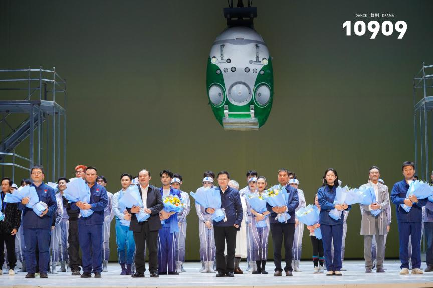 剧目简介:由无锡市歌舞剧院(江苏民族舞剧院)、中国船舶科学研究中心联合创作的舞剧《10909》,是国内首部聚焦载人深潜的作品。其以中国船舶七〇二所的三代科技工作者为原型,讲述科研团队潜心研制“奋斗者”号载人潜水器,并成功坐底深达10909米的马里亚纳海沟的故事。