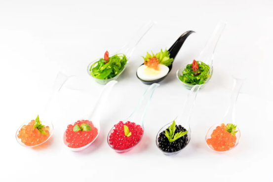 风味协同:鲜味是第五种基本味觉,当食物中谷氨酸与核苷酸结合,鲜味强度呈指数级增长。如“西瓜 + 黑胡椒 + 羊乳酪”,羊乳酪鲜味与西瓜微量氨基酸叠加形成浓郁鲜味基底;鱼子酱和巧克力搭配也遵循此原理。
