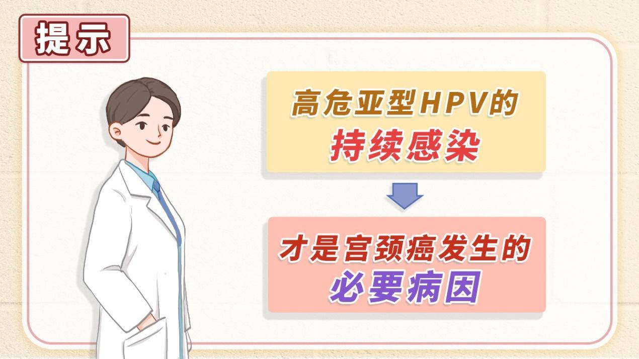 但就算感染了高危亚型HPV,也不代表一定会得宫颈癌!HPV感染只是宫颈癌发生的相关因素,不是必然原因,高危亚型HPV的持续感染才是宫颈癌发生的必要病因。