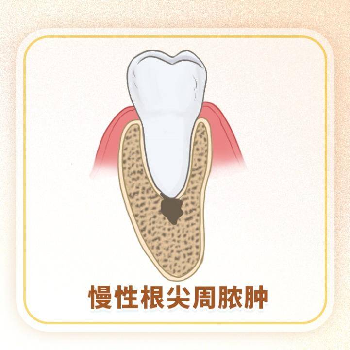 当牙齿因龋齿、外伤、隐裂、磨耗等原因导致细菌侵入牙髓时,牙髓会逐渐坏死,坏死的牙髓成为了细菌绝佳的培养皿,大量的细菌和毒素通过根尖孔向牙根之外扩散,感染了牙根周围的牙槽骨。免疫系统会及时响应并与细菌作战,大量的细菌、死亡的白细胞和组织液就形成了脓液。脓液越积越多,会产生巨大的压力,如同一个不断膨胀的气球,不仅溶解了周围的牙槽骨,还会寻找阻力最小的途径向外排放,最终突破牙槽骨壁,向表浅组织(骨膜下、黏膜下)扩散,在牙龈表面上打开一个“窗口”,这就是我们看到的脓包或窦道。这种脓包的特点是:位置固定,通常位于单个牙齿的牙龈根部附近;患牙多有过龋齿、补牙史、外伤史,曾出现过“咬合痛”“牙齿浮出感”;反复性;患牙可能有轻微松动,叩击时会有隐痛。