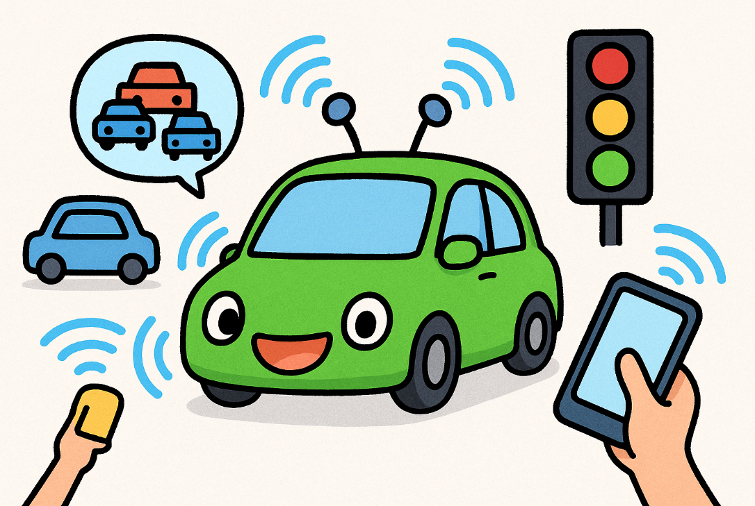 车和车聊天:比如前面的车告诉后面的车:“小心!前面堵车啦!”