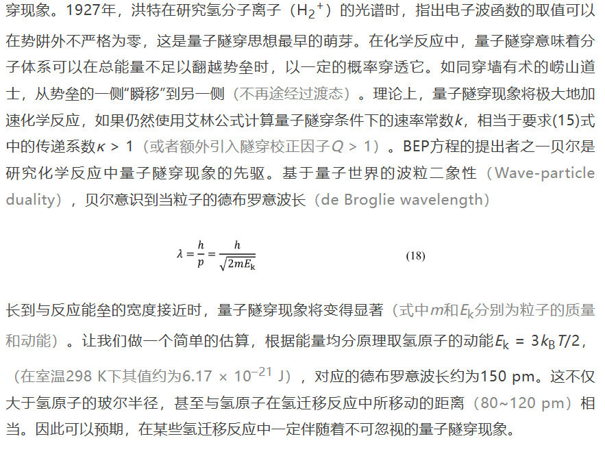 分子体系的尺度远远大于电子,以分子为主角的化学反应中是否会出现类似的量子效应呢?答案是肯定的,分子在势能面上的轨迹完全可以不连续,这就是化学反应中的量子隧