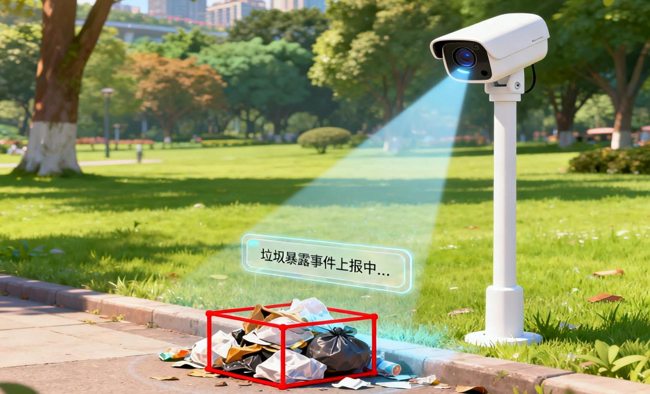 在美丽的中央公园,AI摄像头可以自动识别垃圾暴露、污水排放等环境问题。一旦“发现”有违规行为,它能立刻抓拍并上报至智慧城管平台,大大提高了环境治理的效率,守护着我们城市的绿水青山。
