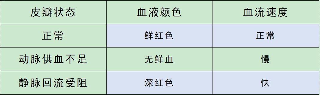 正常皮瓣:与供区肤色一致(红润或淡红色)