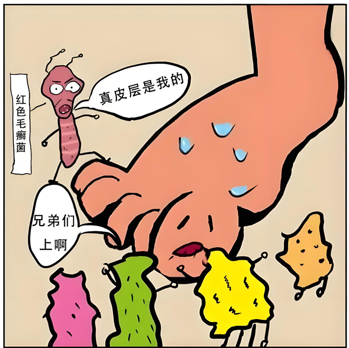 脚汗多、鞋袜闷,就等于给真菌送上了完美的作案要素:潮湿、温暖、不通风。在这三重诱因的加持下,真菌想不泛滥都难!