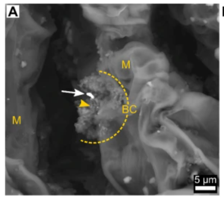 结果显示,约17%的针叶样品中检测到了金纳米颗粒。这些颗粒分布在针叶的叶肉组织中,并被一层细菌形成的生物膜包裹。科学家由此推测,金以可溶性离子形式存在于地下水中,被树根吸收后沿着树体的导管运输至叶片。到达叶片后,部分金离子在特定微生物产生的化学环境中被还原为金属状态,最终沉积在细胞间隙中形成微小颗粒。