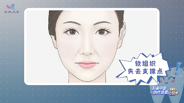 再往外,是决定饱满度的脂肪垫。颧上脂肪垫随年龄萎缩、下滑,而鼻基底深层脂肪却相对稳定。上面塌、下面挺,自然形成 “山谷”。如果此处还叠加牙列磨耗或缺牙,面中部高度更低,法令纹会提前报到。