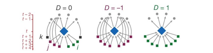 图1:D-index示例图,右图的研究(蓝点)D-index最高,意味着该研究出现后,其它的研究都需要引用该研究,成为了领域中绕不过的基石