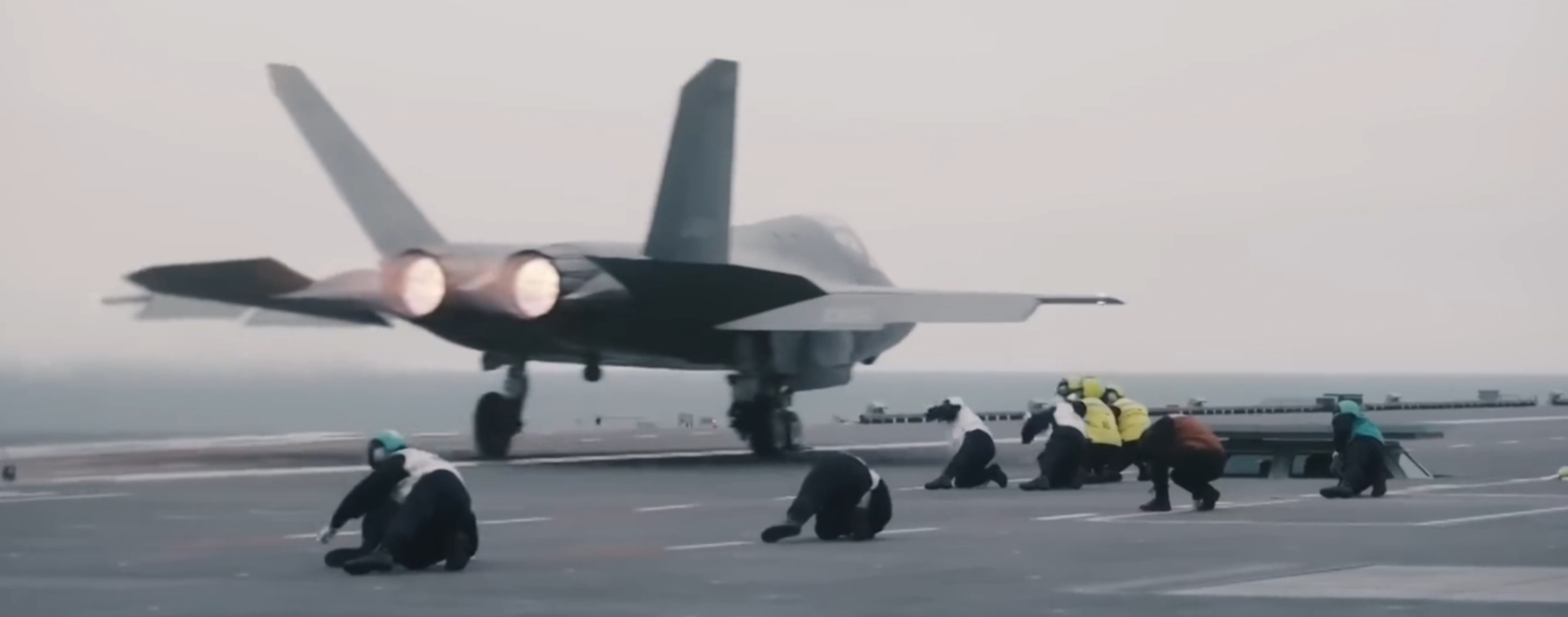 这个画面中飞机就像坠海了一样,能明显感觉到蒸汽弹射对它施加的推力不够充分,又是什么原因呢?