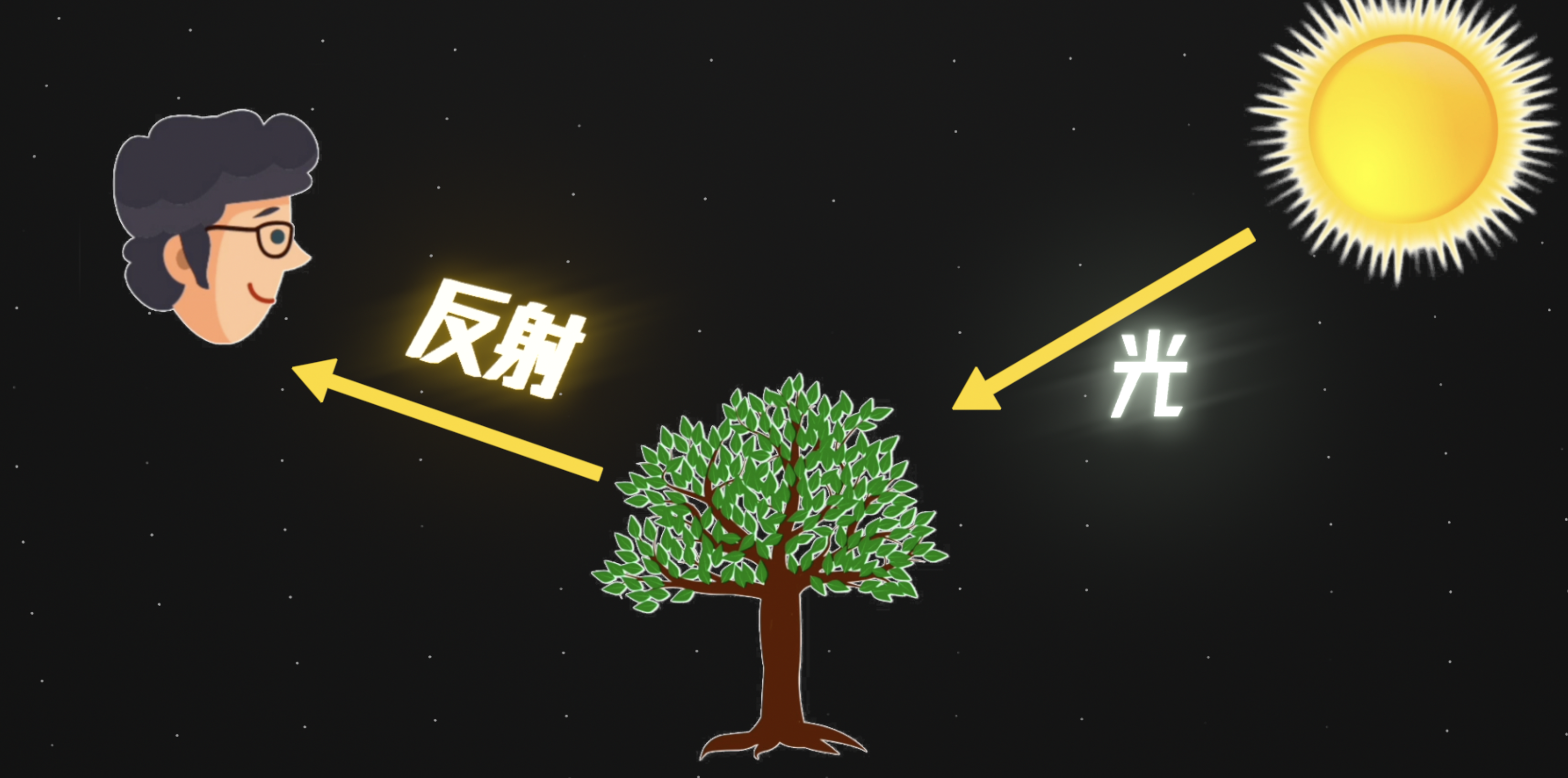 那到这我们就知道了颜色的原理,当一个物体呈现出某种颜色,比如红色,恰恰是因为它的表面把其它所有颜色的光都吸收掉了,只把红色光反射了出来。想想也挺有意思,一个物体呈现出的颜色,反倒是它最讨厌最不愿意吸收的颜色。而一个黑色的物体,是来者不拒的,它能吸收大部分,落在它上面的可见光。白色的物体则恰好相反,它能把大部分可见光都反射出去。