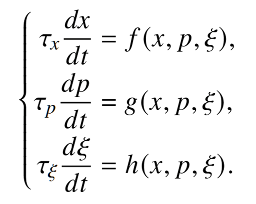 其中是状态变量,是系统参数,是随机变量(噪声),是3种相对时间尺度。具体为: