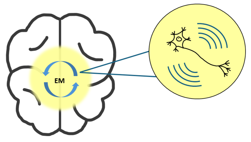(注:上图为CEMI意识电磁信息场理论示意图,展示了由神经网络产生的电磁场如何与神经活动相互作用并影响其活动;出处为原文)