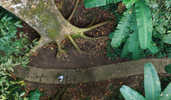 于是,四数木便发展出了板根这种聪明的解决方案。这些巨大的三角形板根,如同建筑上的“飞扶壁”,极大地增加了树干基部的支撑面积,像无数只强有力的巨手,紧紧抓住地面,让这棵巨人能够在风雨中岿然不动。
