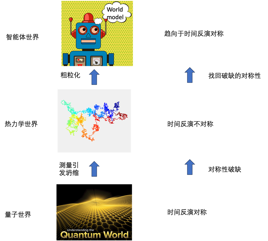 我们的研究发现,在这种反差下,面对不可逆的宏观世界,智能体(无论是人类还是人工智能)会主动构建一种尽可能“可逆”的世界模型,以便更有效地对抗世界的熵增,从而更好地预测环境、适应环境。这是怎么回事儿呢?