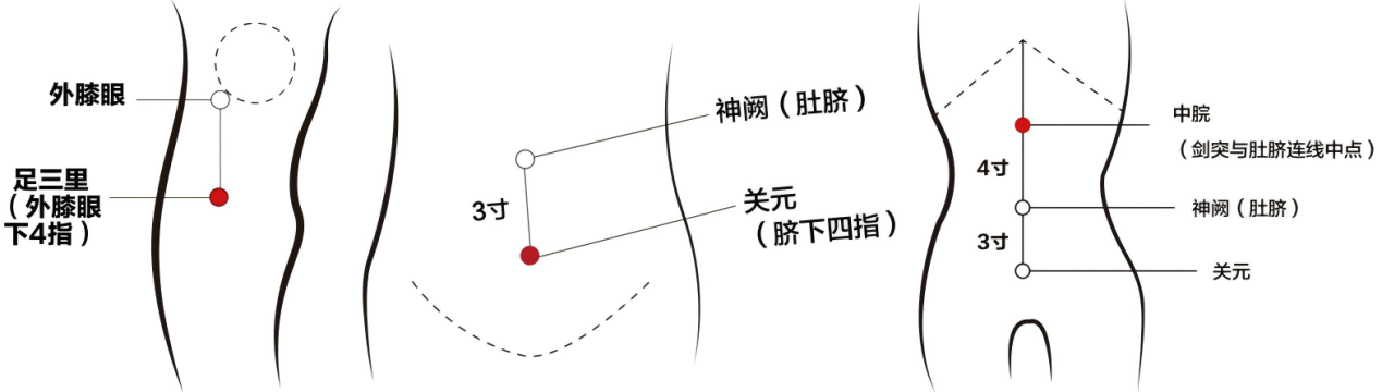 √足三里(小腿外侧):有健脾和胃、化痰祛湿的功效。