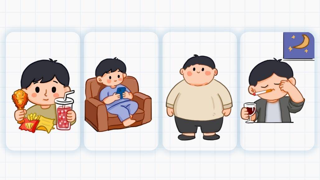 糖尿病的发生是遗传易感性和环境因素共同作用的结果。其年轻化主要归咎于生活方式的改变,如饮食结构失衡,高油、高盐、高糖饮食泛滥,奶茶、含糖饮料、快餐等摄入过多,导致热量超标;运动量严重不足,久坐成为许多职场人的常态,体力活动大幅减少,能量消耗不足;不健康的饮食和缺乏运动直接导致体重增加,而肥胖是2型糖尿病最重要的危险因素之一;其他不良习惯,如吸烟、饮酒、作息不规律、长期精神压力等,也会增加患病风险。这些因素叠加,导致胰岛素抵抗或胰岛素分泌相对不足,从而促使糖尿病提前发生。