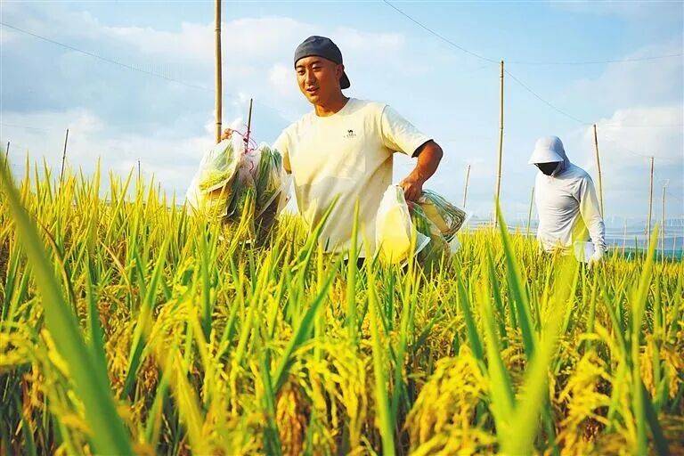 今年3月,位于三亚的国家南繁科研育种基地迎来收获季,金黄色的稻浪随风翻滚,科研人员穿梭其间,忙着采集品种材料。田埂上,钱前抓起一把饱满稻穗,指尖轻搓稻壳、牙齿咬断稻谷,用传统方法鉴定稻谷品质。“利用野生稻创制新品种,是解决水稻生产难题的有效途径。”他说,野生稻已成为破解抗逆、增产等关键问题的天然基因库。