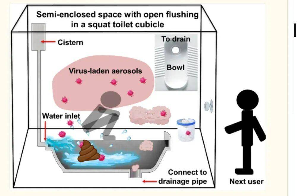 当夹杂着致病菌的气溶胶悬浮在空气中的时候,蹲坑的姿态也会让人的口鼻处在“病菌气溶胶”聚集区,这确实为能通过粪-口这条途径传播的疾病创造了条件。