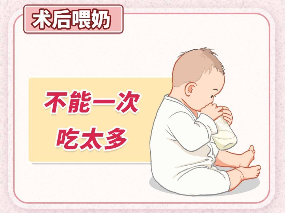 孩子术后的饮食也有讲究,尤其是新生儿和婴幼儿,他们的胃肠功能非常薄弱。就像成人感冒会流鼻涕、流眼泪,新生儿感冒往往会表现为拉肚子,这就能看出他们胃肠的脆弱。有些家长觉得孩子刚做完手术,需要补营养,就想让孩子多吃点,其实这样一方面容易伤害孩子的胃肠功能,一旦胃肠功能受损,再想建立正常的肠道功能就很难了;更重要的是,一次吃得太多,胀大的胃就会向上挤压膈肌,而手术缝合好但还没有长结实的膈肌可能会裂开造成膈疝复发,需要再经历一次手术修复,给孩子造成不必要的伤害!