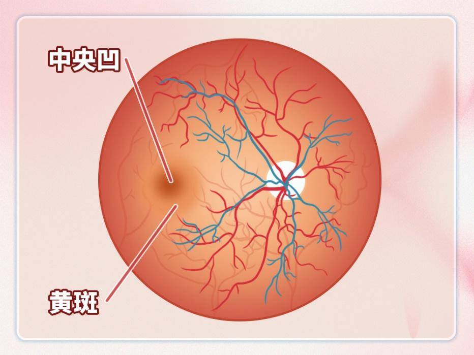 黄斑位于视网膜的正中央,因富含叶黄素,外观呈黄色,故得名“黄斑”。视网膜像一个锅底,黄斑就是锅底的最中心点。(该比喻仅限于帮助理解)