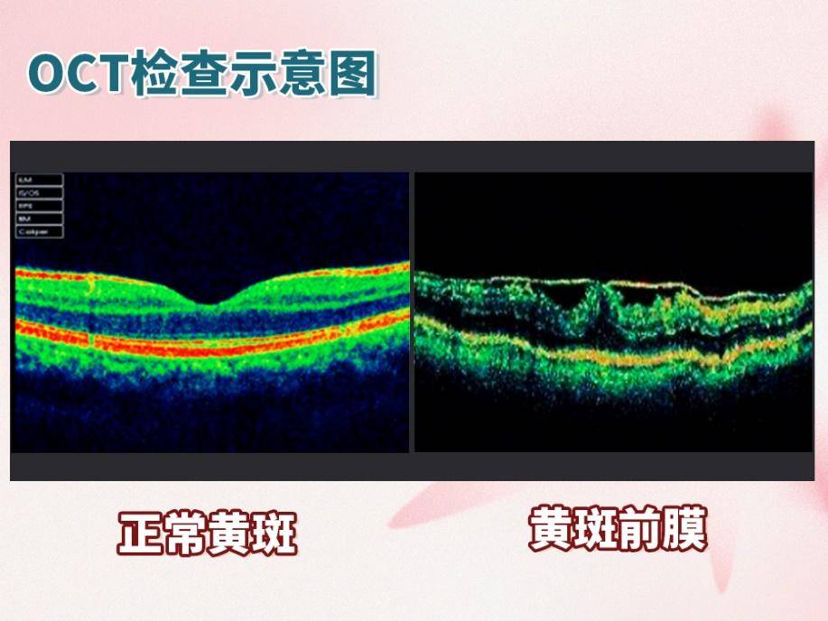 眼底病多半没有疼痛感觉,没有红肿热痛。黄斑有任何异常主要表现为视力下降、看东西变形或中心发黑。比如老年人原本视力很好,突然出现看东西模糊或看东西变形、看直线不直等情况;眼睛受过伤的患者,初期视力可能还可以,但后来逐渐出现视力下降;接受过眼部手术,如视网膜脱落玻璃体手术的患者,术后一段时间视力不错,但过半年后视力又下降,或看东西变形;有飞蚊症(眼前黑影飘动)的患者,如果出现视力下降和视物变形,需要特别注意,警惕黄斑前膜,应及时到眼科就诊。通过眼底检查、光学相干断层扫描(OCT)等检查手段,可以明确诊断。