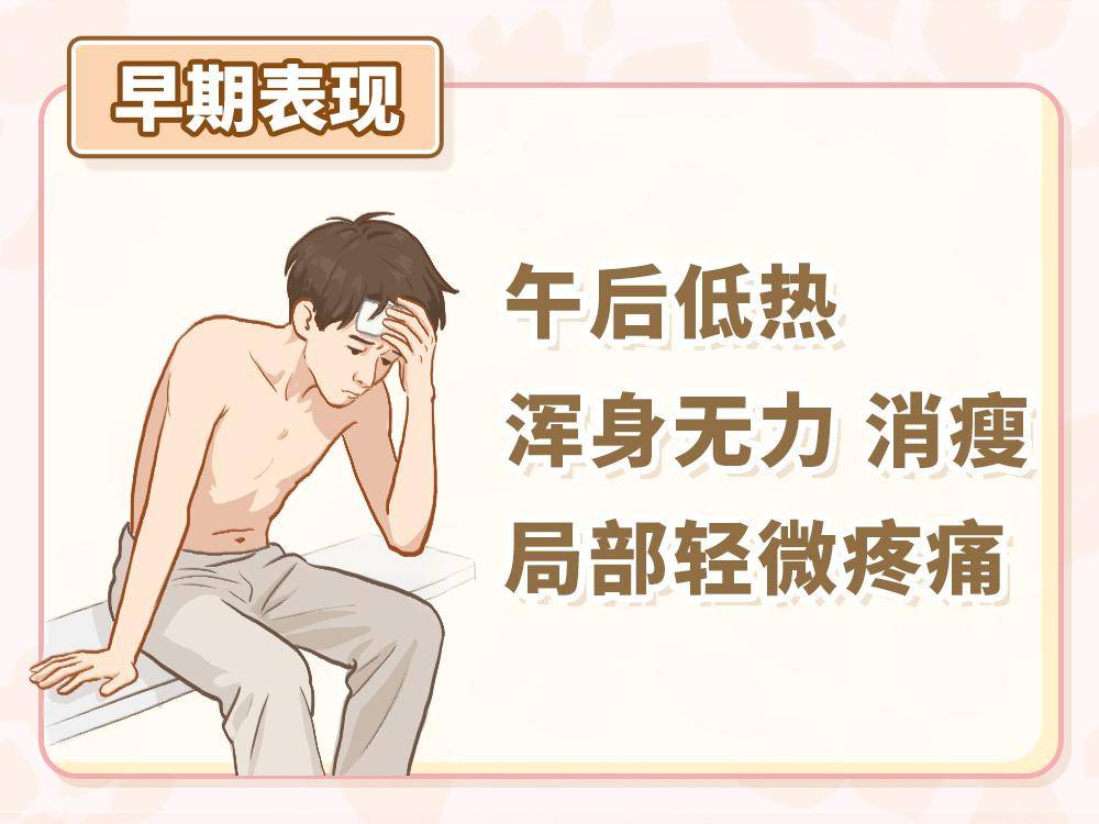 骨结核最狡猾的地方,就是早期症状像“小感冒”或“没休息好”,很容易被忽略。它的早期表现多是慢性消耗性症状,比如: