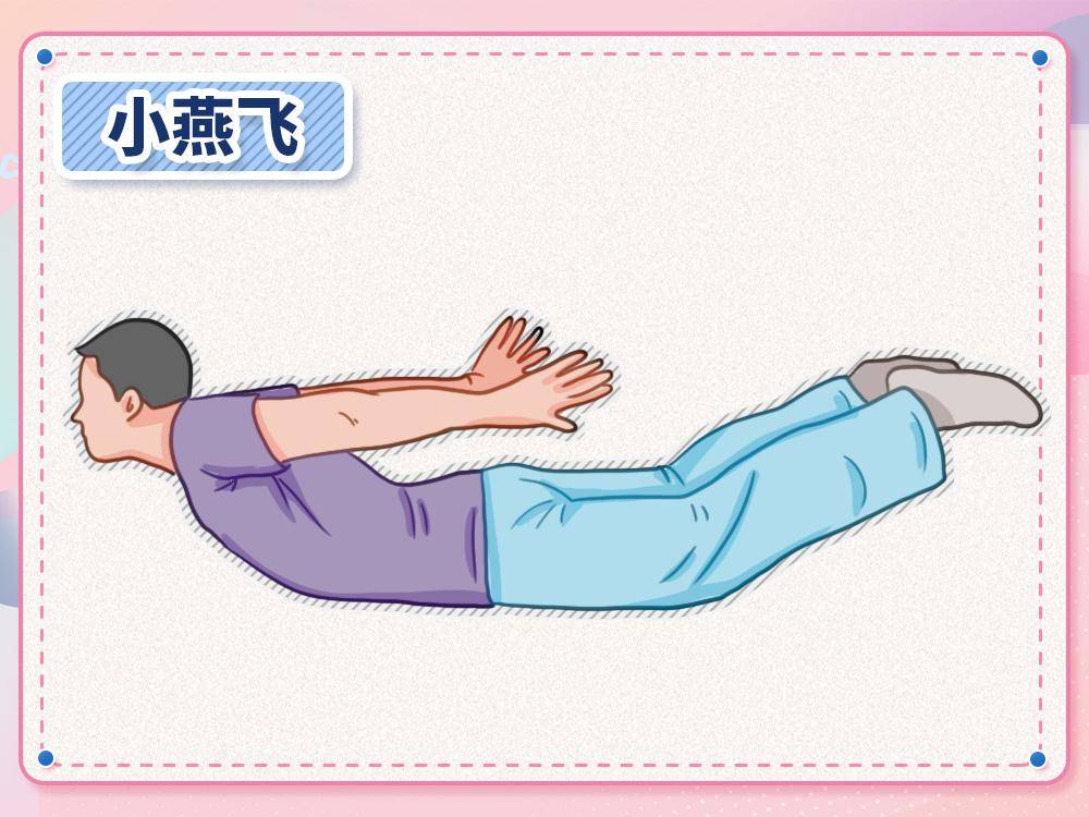 常规训练:体力允许的情况下,首选 “小燕飞”,通过模拟燕飞姿势,增强腰背肌核心力量。但是需在医生评估后进行,避免动作不当造成损伤。