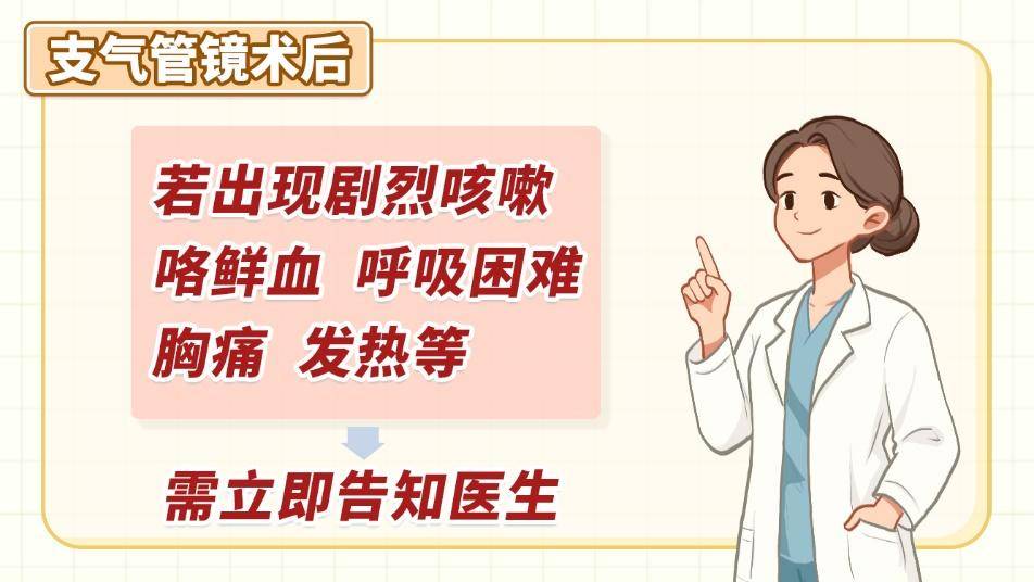 孩子可能会出现咽喉不适、声音嘶哑、少量痰中带血等情况,这通常是正常反应,一般会自行缓解。应让孩子少说话,避免用力咳嗽。若出现剧烈咳嗽、咯鲜血、呼吸困难、胸痛或发热等,需立即告知医生。术后建议适当休息,避免剧烈运动。对于门诊完成检查的孩子,需在院观察数小时无恙后方可离院,并在家继续休息。