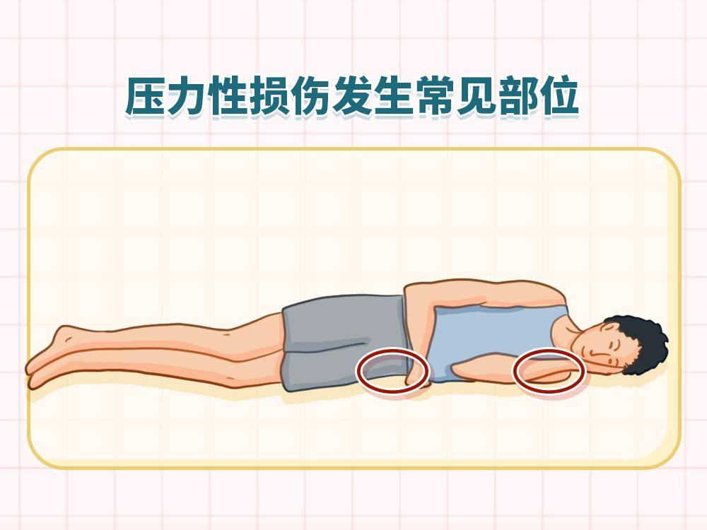 简单来说,就是我们身体上那些骨头比较突出的地方(比如骶尾部、脚后跟、坐骨结节等),因为长时间受压,导致局部皮肤和皮下组织缺血、缺氧,最终出现损伤。就像我们长时间坐着不动,腿会麻一样,这些部位的皮肤和组织如果长期“被压迫”,也会“受不了”,从而出现破损。