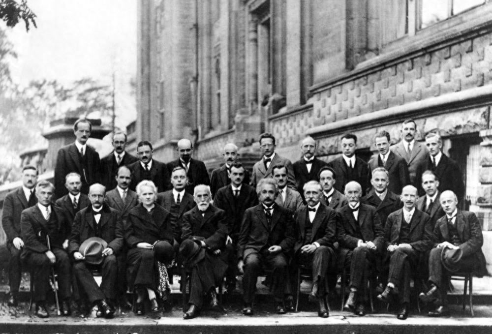 图5 第一届索尔维会议合影,坐者左三是索尔维、右二是玛丽·居里,站立者右二是爱因斯坦