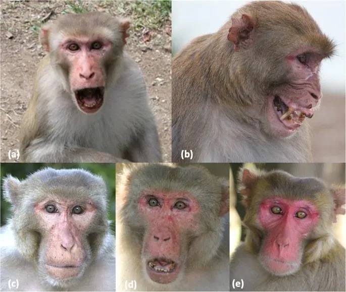 不过,如果从面相本身在进化中的意义,我们有理由相信一部分凶狠面相是可以遗传的。比如达尔文早期就注意到过面部行为不只是人类中存在,在多种物种里都有呈现,比如下图里的猴子,面部呈现了明显的表情。