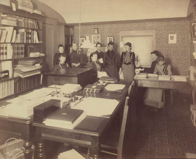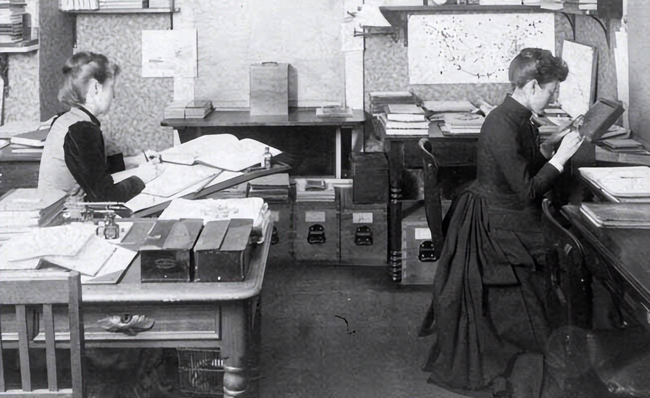 1898年,哈佛计算员正在工作。站立者为弗莱明。图源:Harvard University Archives / UAV 630.271 (E4116). Harvard Libraries