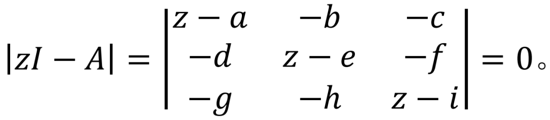 |𝑧𝐼−𝐴|=0。(1)