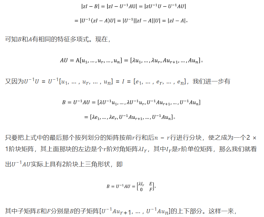 定理 2.设𝜆是一个方阵的特征值,则它的代数重数大于或等于它的几何重数。