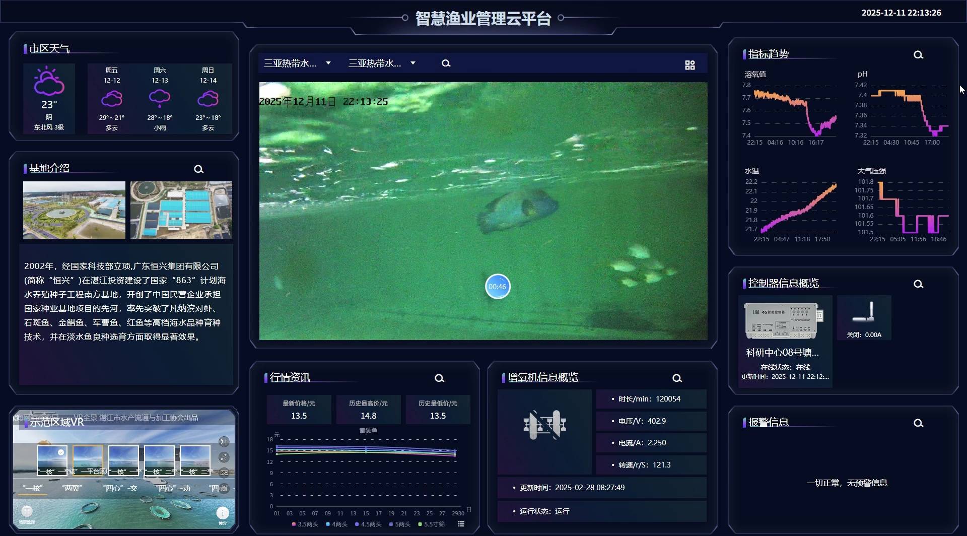 有了稳定的电力和通信条件,这片深海重器得以构建起全国领先的智慧渔业管理云平台,让万里碧波之上的养殖作业,尽在云端掌控。