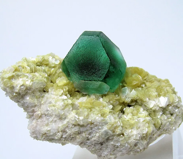 此外,一些商家还会用萤石等矿物冒充水晶,故意将其称为“绿水晶”“紫水晶”“软水晶”——这么称呼是因为萤石和水晶在外观上具有相似性,有多种矿物颜色,但其硬度相对更低(萤石的莫氏硬度为4)。而萤石因其储量丰富、开采成本低廉、原料价格低等原因,常被混在水晶中一起出售。萤石具有一定的放射性,有的甚至可以在夜晚发光,并在古代被当成夜明珠使用,但这种放射性可能对人体健康造成损害。因此,如果一件“水晶”制品价格远低于市场价,且晶体异常通透、颜色均匀鲜艳(尤其是紫色、绿色),就需要高度警惕,它可能是萤石冒充的。