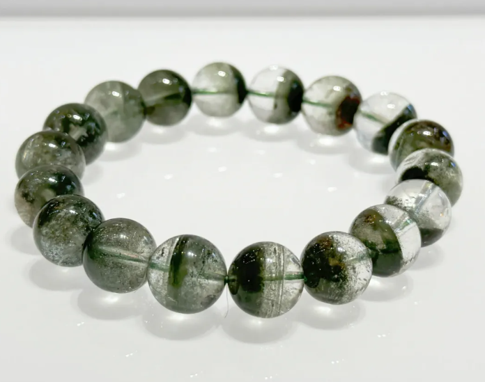 有色离子的颜色在水晶晶体生长的过程中,会包裹进一些其他矿物颗粒或流体。包裹体会导致水晶形成不同的颜色、产生特殊光学效应以及随机形成各种各样的内部图形。其命名多与形状相关,例如发晶是因为水晶内含针状如发丝一样的矿物包裹体。常见的有含金红石的金发晶,含电气石的黑发晶,以及含红色阳起石或赤铁矿的红发晶。而如果包裹体为绿泥石,其形状则会呈现颗粒状、云雾状等随机形态,因此也被称为绿幽灵。