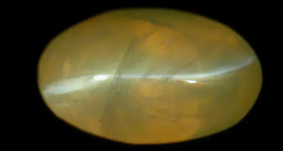 水晶内部如果有裂隙产生干涉光,就会形成晕彩效应;而包裹体如果平行分布就会反射特定方向的光,形成猫眼效应。