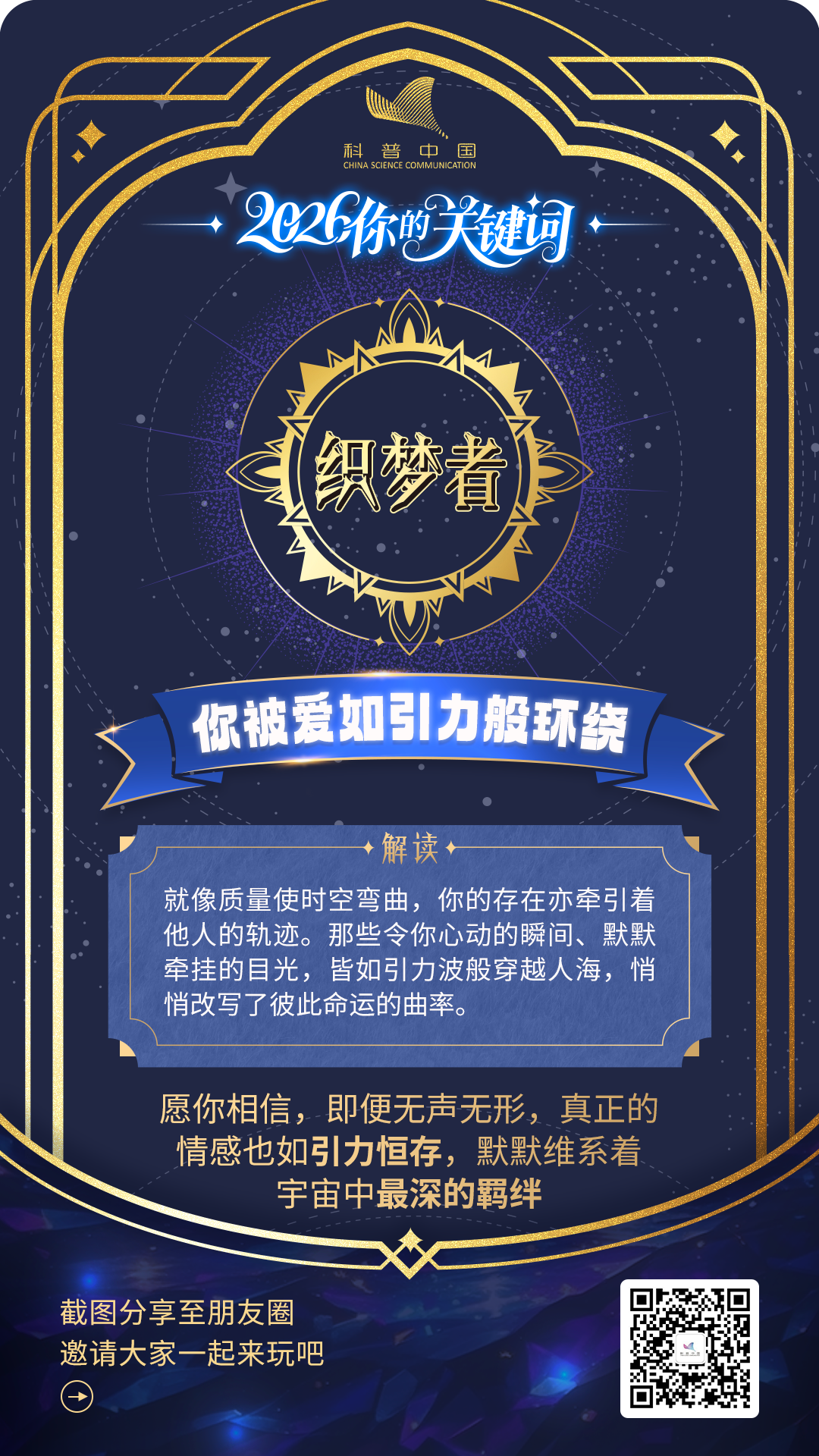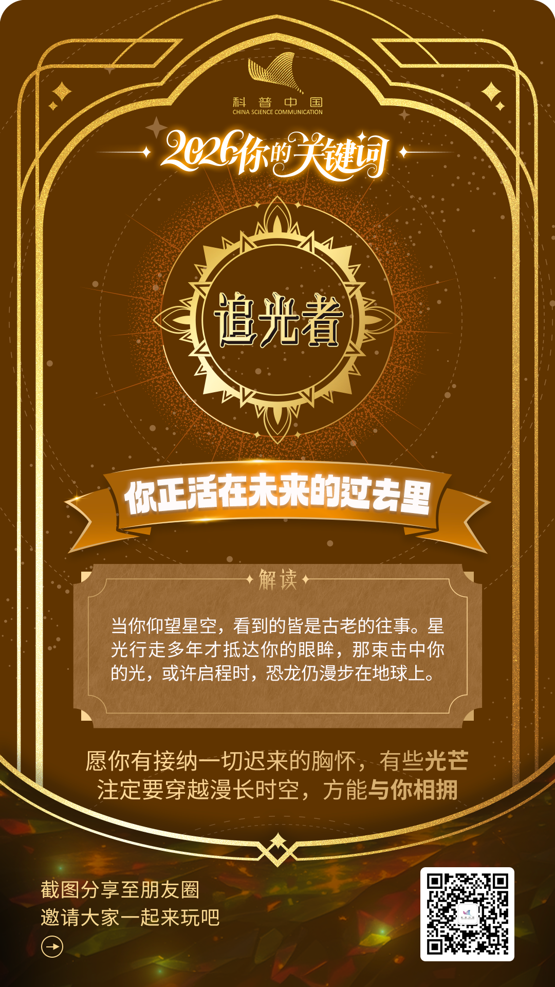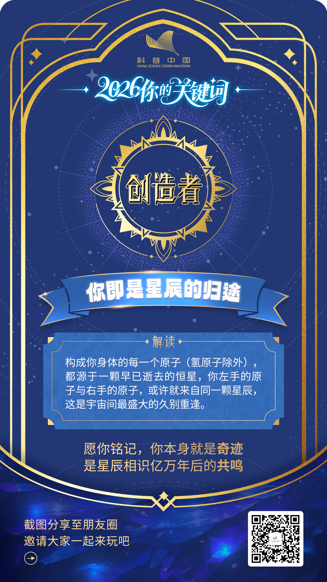 随机选一张“科学幸运卡”吧,让穿越亿年的星光、构成你我的星尘、以及万物运行的法则,亲自为你送上 2026 年的第一个“精神彩头”。