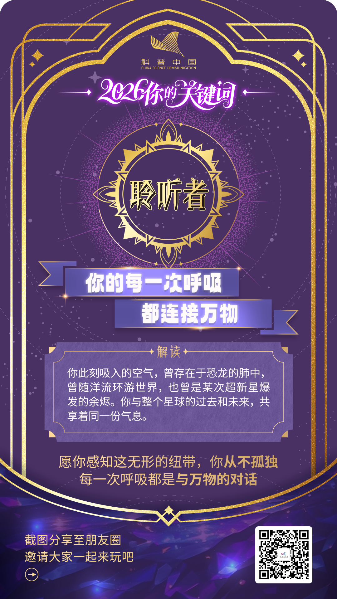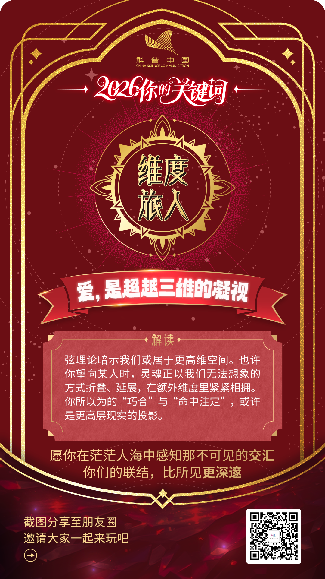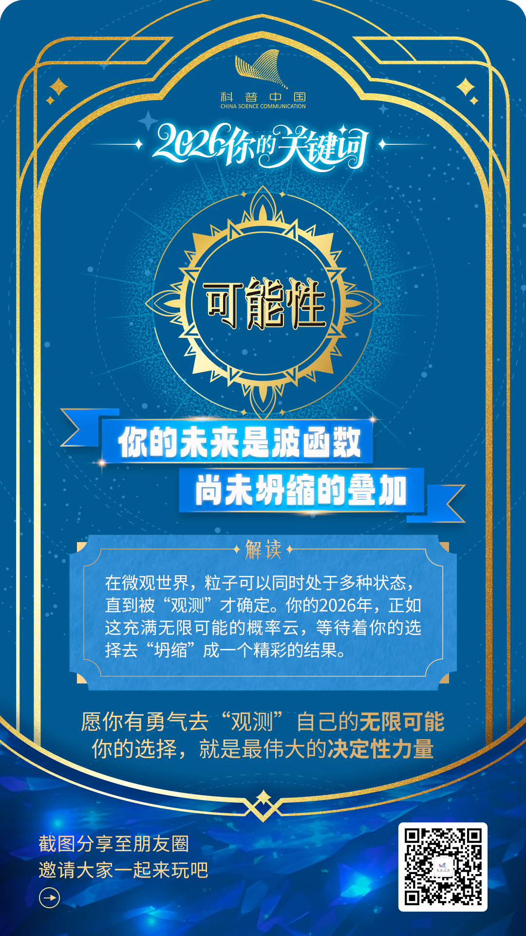 随机选一张“科学幸运卡”吧,让穿越亿年的星光、构成你我的星尘、以及万物运行的法则,亲自为你送上 2026 年的第一个“精神彩头”。